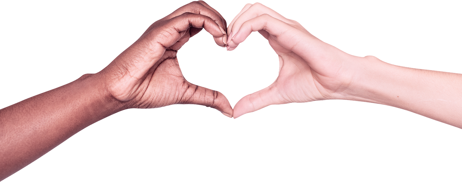 Hazte una foto con quien quieras, en la que cada persona une a la otra su medio corazón formado con el dedo índice y el pulgar.
